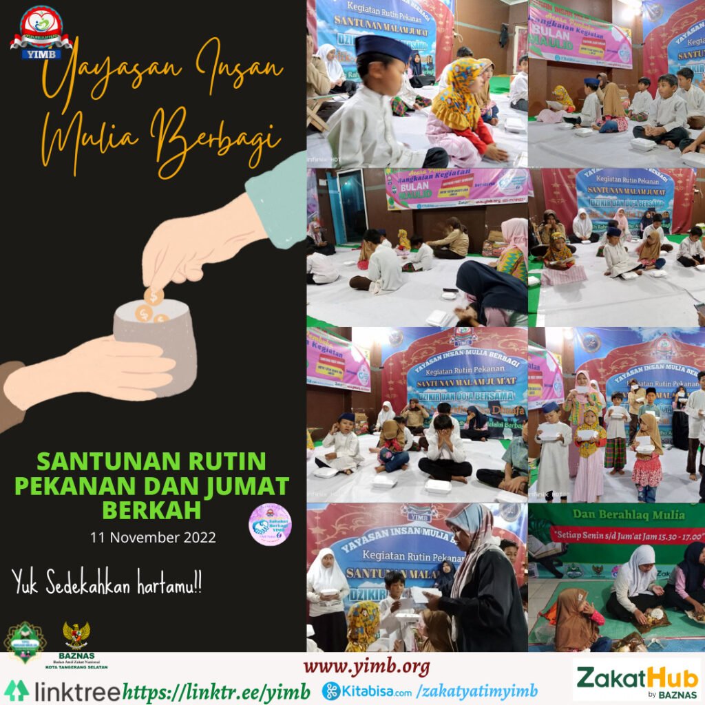 Kegiatan Pekanan Santunan Dan Do’a Bersama Adik-adik Yatim Dhuafa YIMB, 11 November 2022