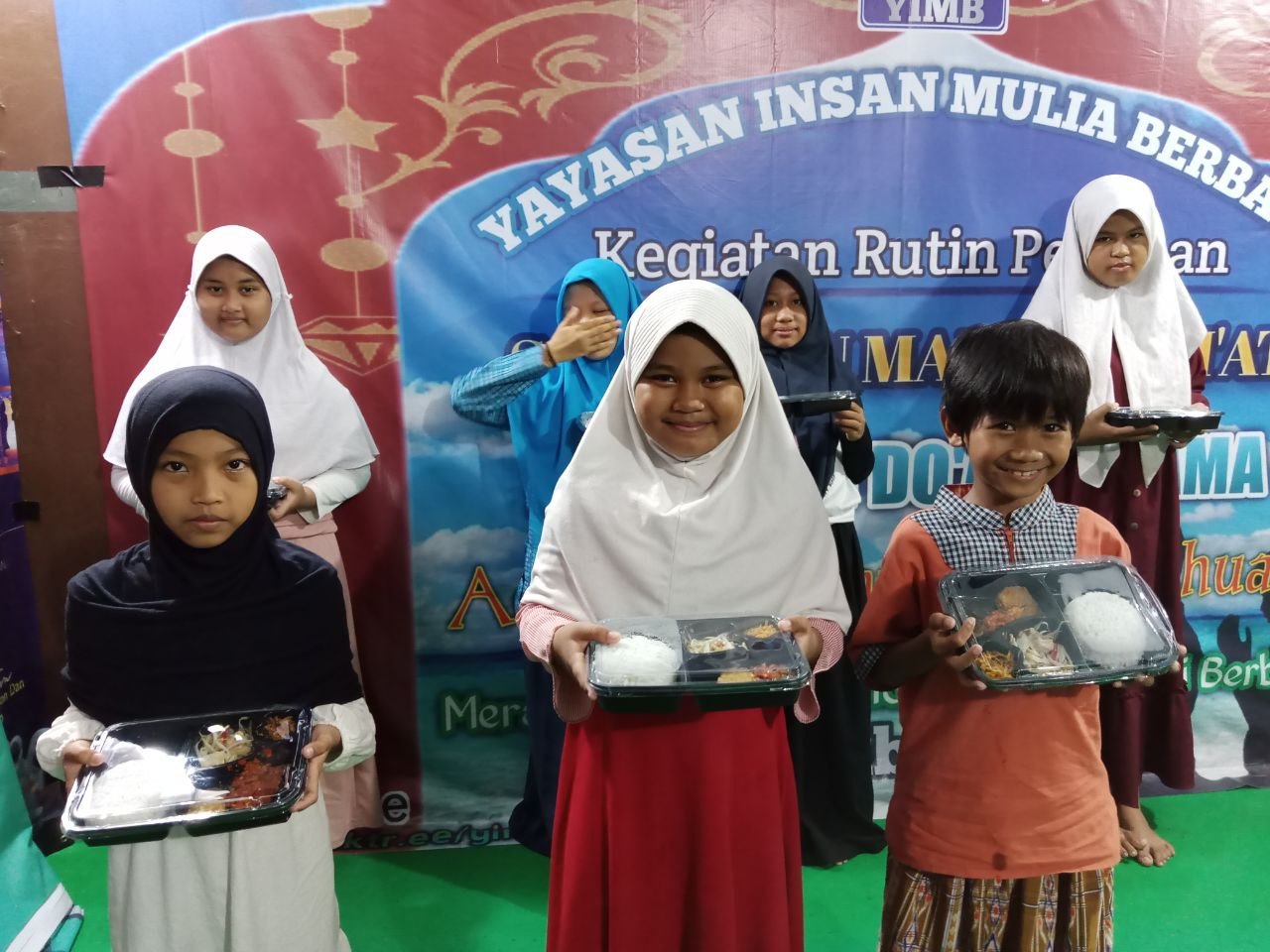 Kegiatan rutin santunan dan doa bersama serta membagikan paket menu berbuka untuk adik adik yatim dan dhuafa | YIMB 14 Maret 2025