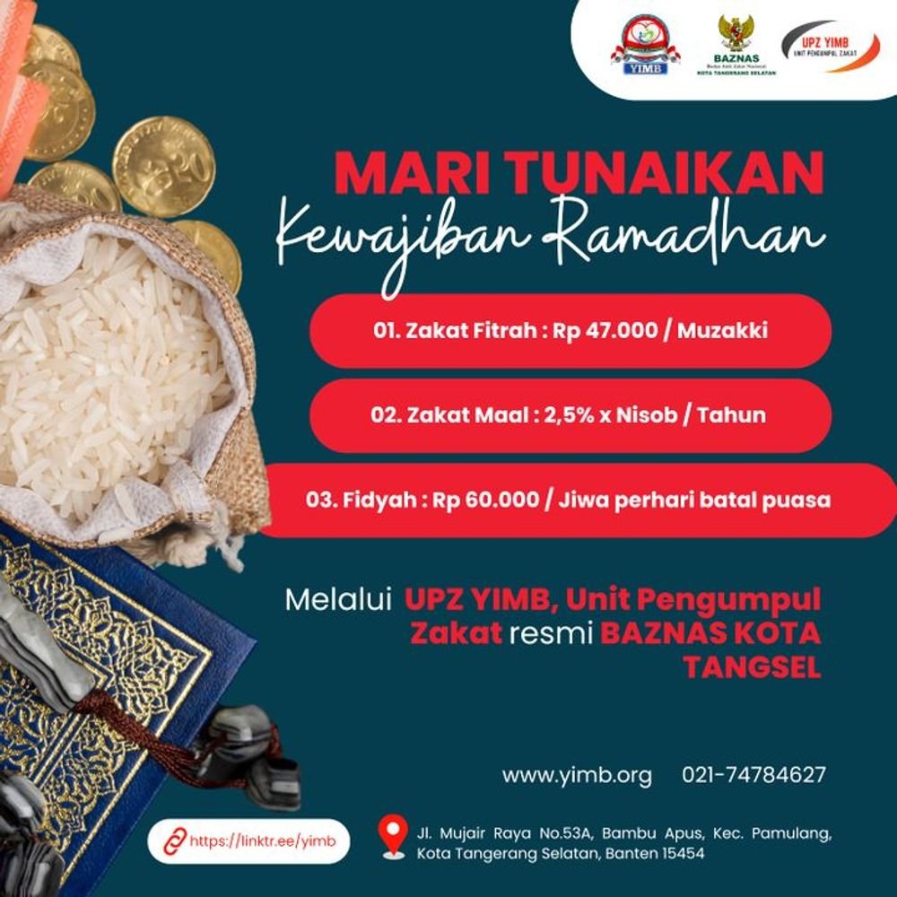 Alhamdulillah telah kami implementasikan titipan amanah zakat yang telah diberikan dalam kegiatan pemeberian Santunan Paket Bekal Ramadhan YIMB, untuk Anak-anak Yatim,Dhuafa dan Lansia. Dalam bentuk pemberian Uang Tunai dan Paket Sembako persiapan awal Ramadhan.