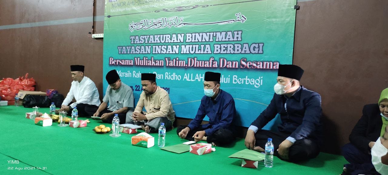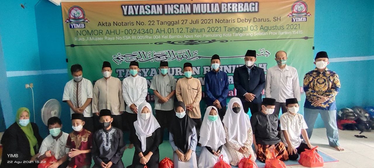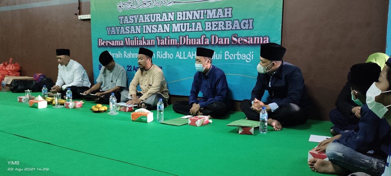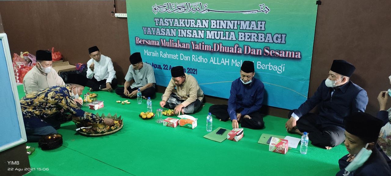 Alhamdulillah…Dengan Terus Mengucap Syukur Seraya Memohon Do’a Dan Ridho serta Barokah Allah SWT, Sholawat Serta Salam Semoga Selalu Tercurahkan Kepada Junjungan Kita Semua,Nabi Akhir Zaman,Rasulullah Muhammad SAW. Hari Ini Ahad 22 Agustus 2021 Seluruh Rangkain TASYAKURAN BI NI’MAH LAUNCHING Yayasan Insan Mulia Berbagi Telah Berjalan Dengan Sukses Dan Lancar.