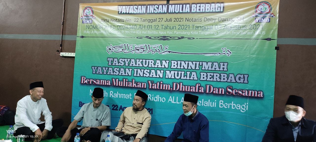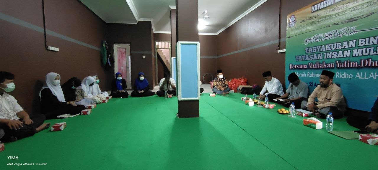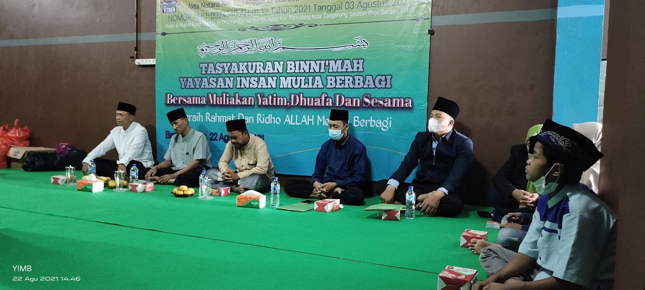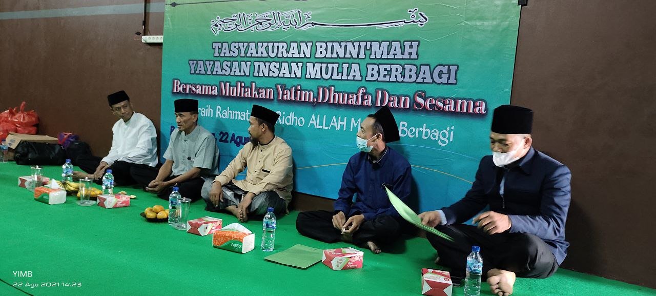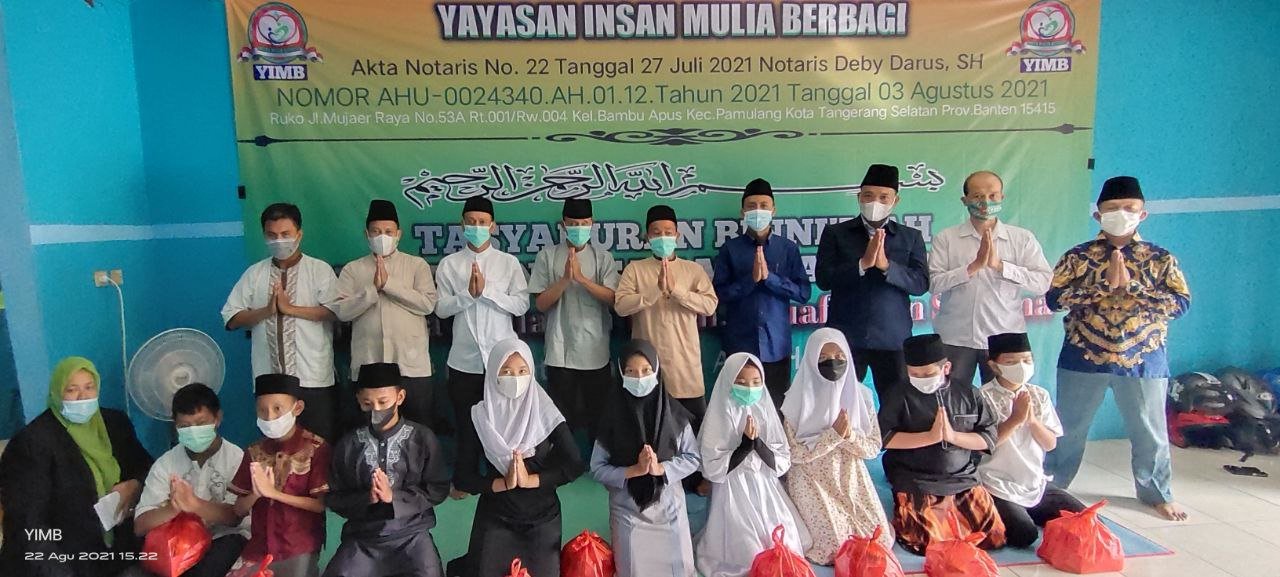 Alhamdulillah…Dengan Terus Mengucap Syukur Seraya Memohon Do’a Dan Ridho serta Barokah Allah SWT, Sholawat Serta Salam Semoga Selalu Tercurahkan Kepada Junjungan Kita Semua,Nabi Akhir Zaman,Rasulullah Muhammad SAW. Hari Ini Ahad 22 Agustus 2021 Seluruh Rangkain TASYAKURAN BI NI’MAH LAUNCHING Yayasan Insan Mulia Berbagi Telah Berjalan Dengan Sukses Dan Lancar.
